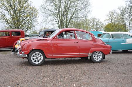 | Anders & Kristina in a 48 Chevy Fleetline Aero Sedan | Saab 93 owned by Kennet Lundgren |